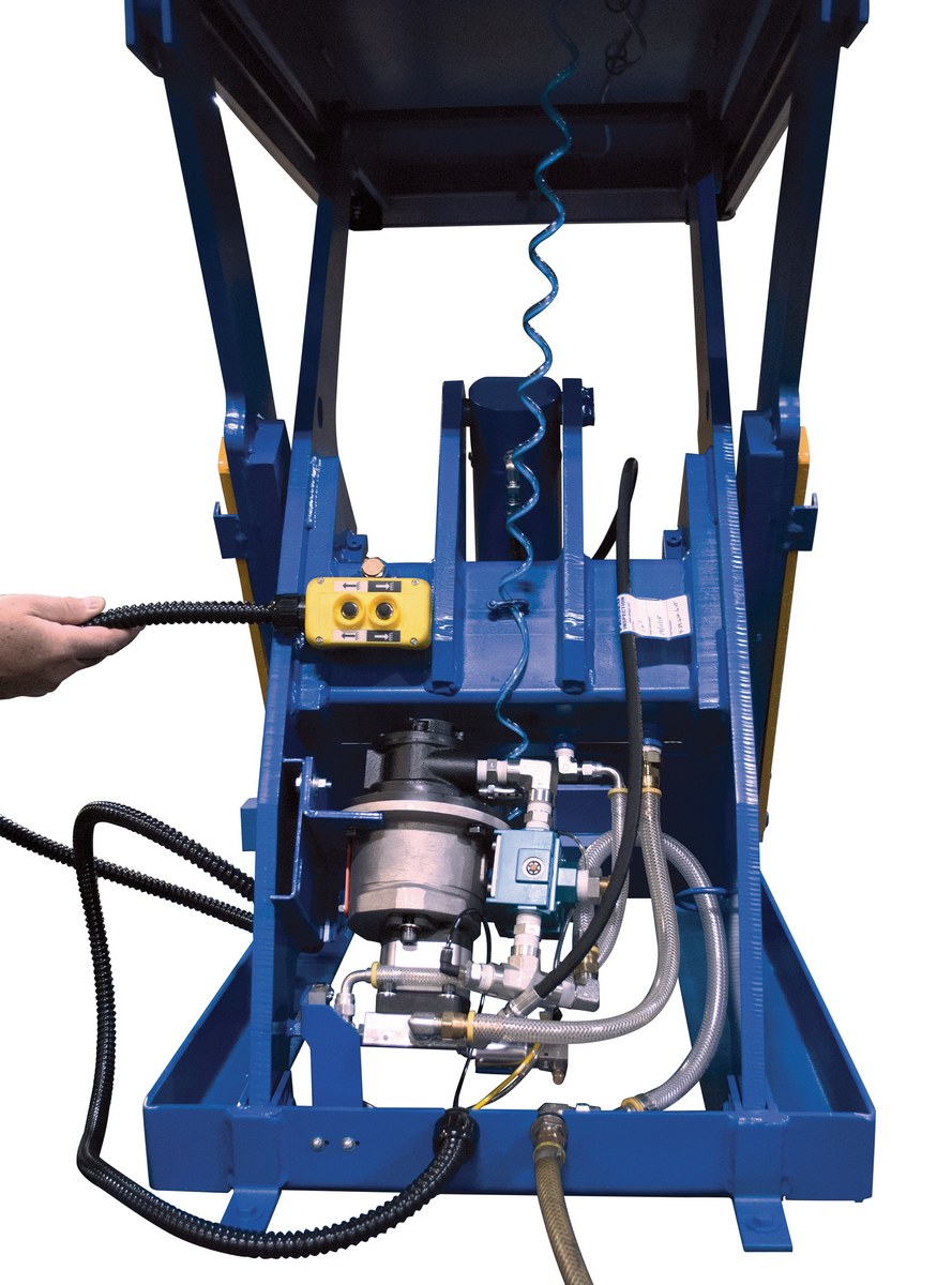 Lift-hold-lower power and control scheme, rotary air/oil handheld push-button control (requires filter and lubricator).