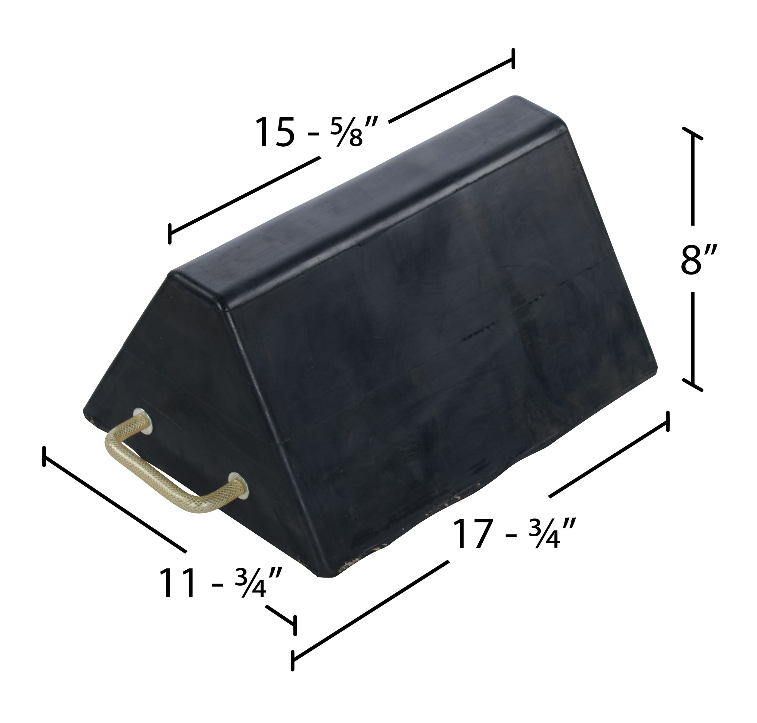 The jumbo rubber Wheel Chock is constructed of reinforced rubber to provide a sure grip on virtually any surface. The curved surface contours to fit tires. Rubber resists tearing, abrasion, ozone weathering, etc. The functional design is durable in all weather conditions.