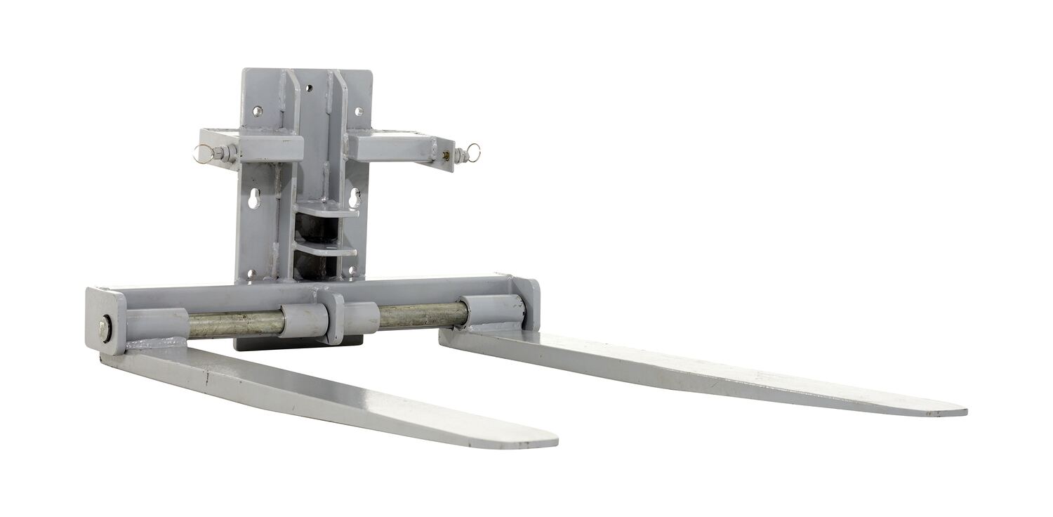 Sometimes the entry point on pallets can be spaced differently, making it awkward if your forks are in a fixed position. Thankfully there is an easy solution. The adjustable fork attachment! The forks can be maneuvered to a position that better fits the users’ needs depending on each situation. Each fork lays flat making it perfect for lifting and maneuvering pallets or skids!