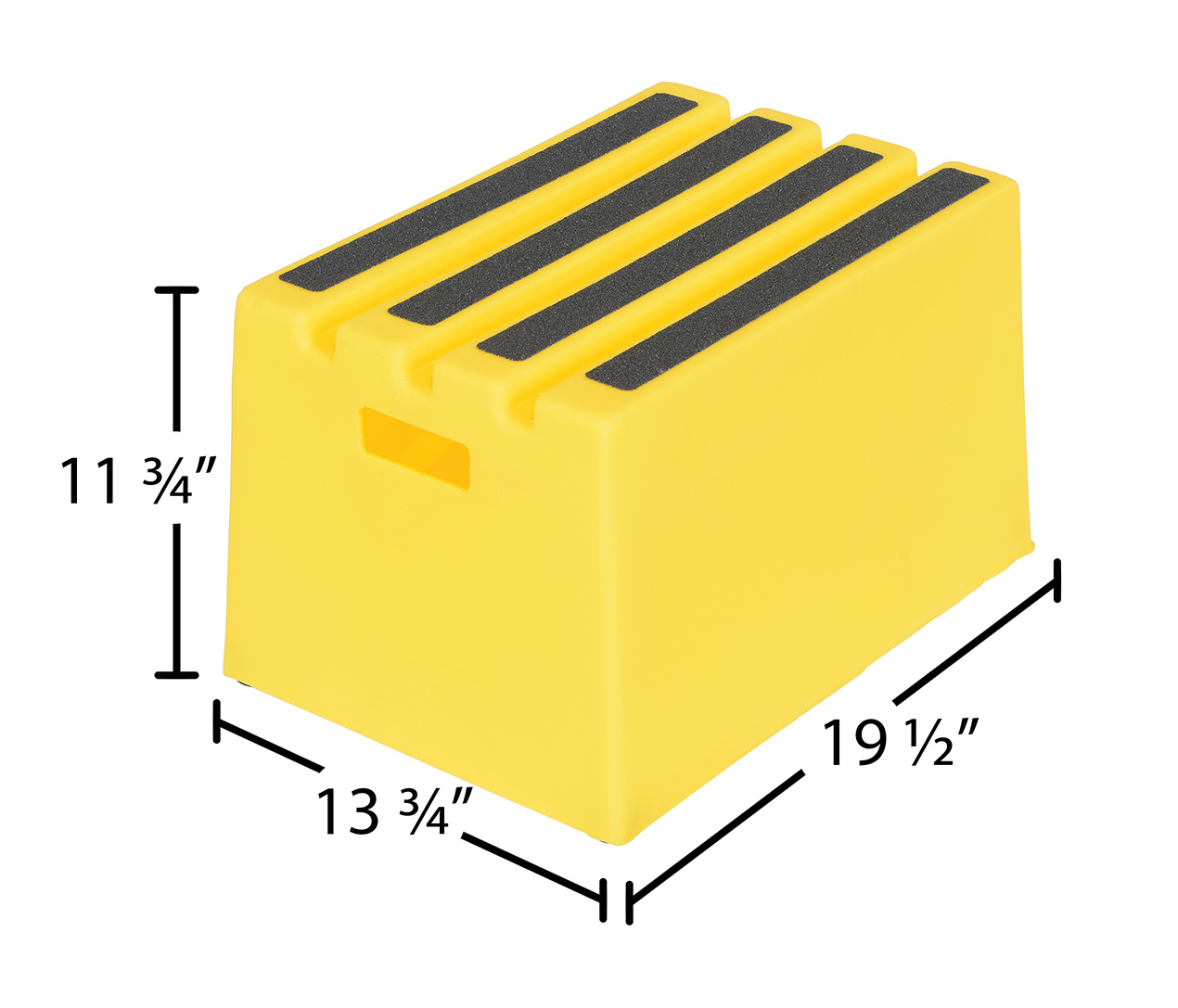 Polyethylene 1-Step Step Stool 500 Lb. Capacity YellowWhen items are out of reach, do not strain, simply step up with this Polyethylene step stool. This stool has rubber feet and a non-skid tape surface. Hand holes are standard for easy one person transportation.